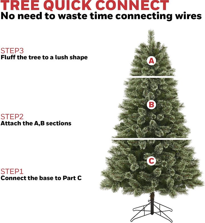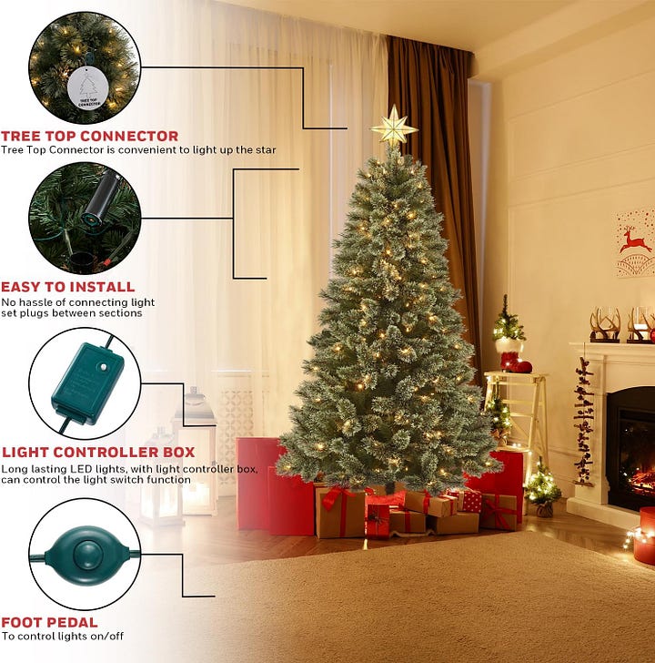 A Festive Atmosphere: Transform your living space into a festive wonderland with ease. Our thoughtfully designed tree is pre-lit, sparing you the time and effort of stringing lights. Enjoy the radiant glow of the season effortlessly.