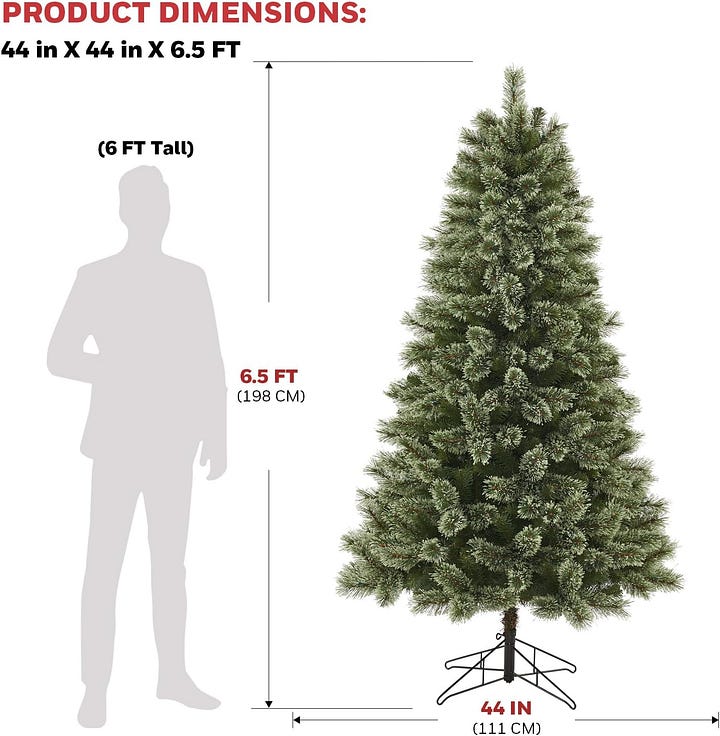 【6.5 Feet of Festive Elegance】Elevate your holiday decor with our 6.5-foot Frances Cashmere Pre-Lit Christmas tree. Standing tall with a generous 44-inch base diameter, it sets the perfect stage for a joyful celebration.